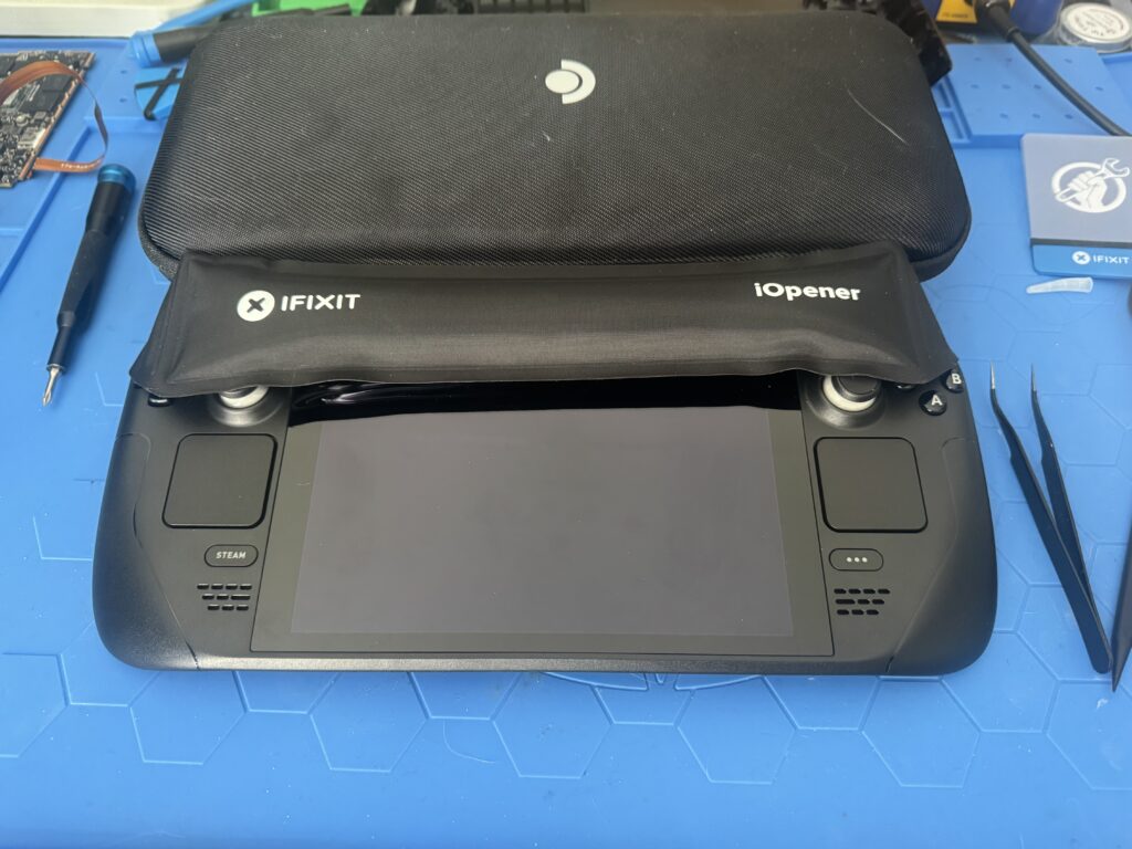It’s now time to replace the OEM screen with the DeckHD upgrade. I don’t know if you can even get these anymore as their store is broken, which is a real shame. An iFixit iOpener will help with loosening up the screen adhesive.