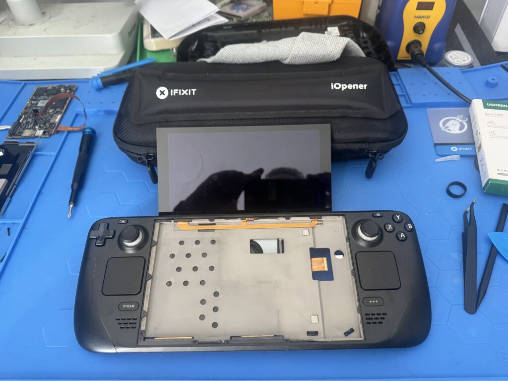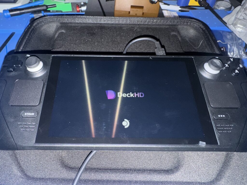 All the hard work is now done. Now we need to clone the storage and get the new 1TB NVMe ready. This bit took about an hour and was done from the command line so I’ll spare you the boring photo. With that done and the Deck booting, we finally have to flash the Deck BIOS so the new screen works properly, easily done by downloading a script in desktop mode and then running it. Let’s check it works now.